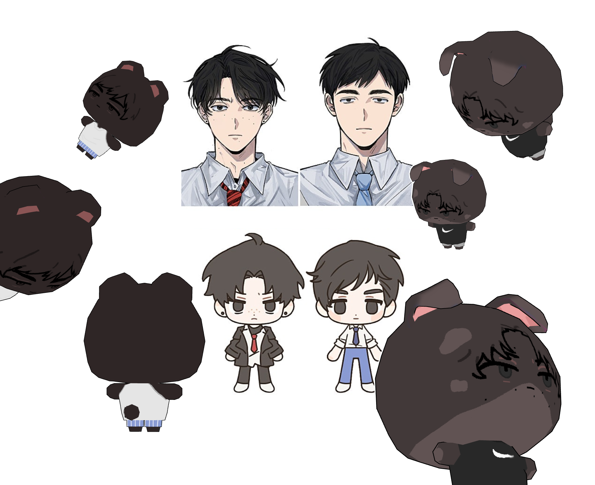 - 귀를 제외한 기본 몸 형태와 크기는 모두 동일합니다. 바지를 입은 모양으로, 치마를 입은 캐릭터의 경우 원하시는 이미지와 다를 수 있습니다. 모델링 수정의 경우 어떤 형태이든 동일한 추가금을 받고 있습니다.